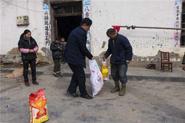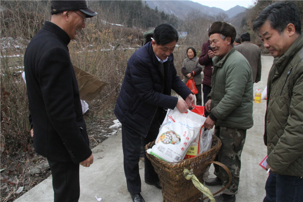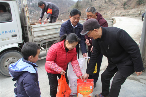 2018年2月7日,安康寶業(yè)公司扶貧工作組響應(yīng)市工商聯(lián)“萬(wàn)企幫萬(wàn)村”的號(hào)召,與漢濱區(qū)中原鎮(zhèn)麻廟村結(jié)為幫扶對(duì)象,在春節(jié)來(lái)臨之際他們冒著嚴(yán)寒和冰雪路滑,給該村47戶(hù)貧困戶(hù)送去了米面糧油和大肉。