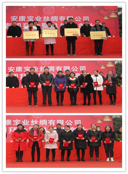 1月28日,寶業(yè)絲綢公司年會上,總公司副總經(jīng)理譚照明先生和絲綢公司黨委書記程時艷女士分別發(fā)表了講話,隨后,公司領(lǐng)導(dǎo)頒發(fā)了絲綢公司的優(yōu)秀班組獎和先進(jìn)工作者獎。